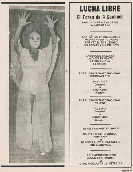 その中には、後に「最初のメキシコ人ルチャドーラ」として語られるナタリア・バスケスの名もあります。彼女はアメリカ人選手とタッグを組み、外国人チームと対戦したと記録されています。
