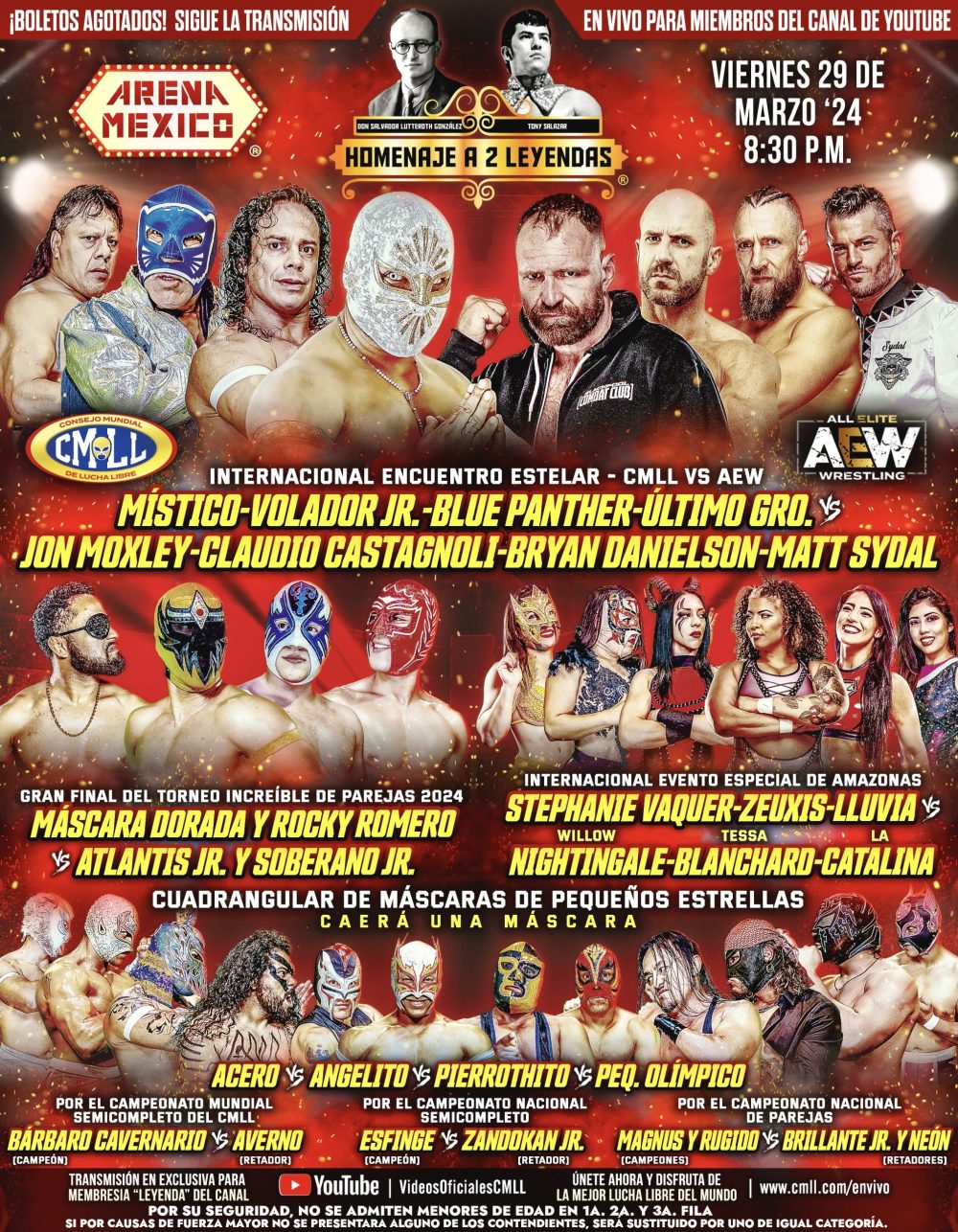 ミスティコ、ボラドールJr、U・ゲレーロ、B・パンテルのCMLL選抜チームが、J・モスクリー、C・カスタニョーリ、B・ダニエルソン、M・サイダル率いるAEW選抜チームと激突します。