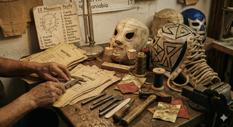 「額、顎、耳の位置、後頭部のカーブ……。父は頭部の17箇所をミリ単位で計測し、それを一枚の布へと落とし込む手法を確立しました。これが『マルティネスの型紙』です。この型紙で縫われたマスクは、激しい試合中も決してズレず、選手の表情を殺さず、なおかつ素顔を完璧に隠し通す。他メーカーがどれほど真似をしようとしても、この『17の魔法』だけは再現できないのです」